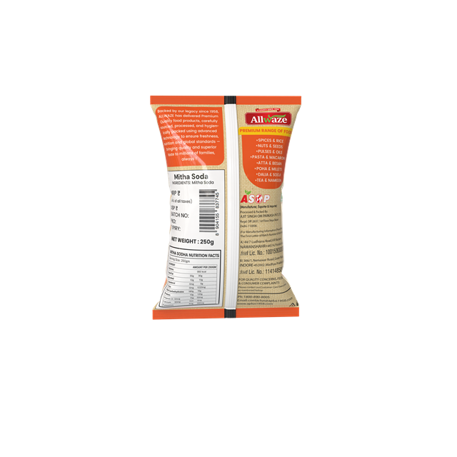 Mitha Soda is a high-quality leavening agent widely used in cooking and baking to achieve perfect fluffiness, crispiness, and texture. Known for its purity and effectiveness, it helps enhance the taste, softness, and rise of a variety of homemade dishes.