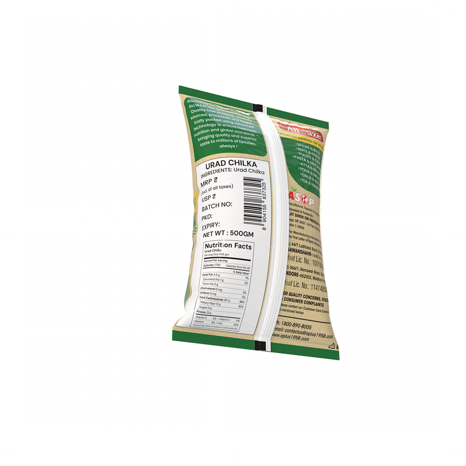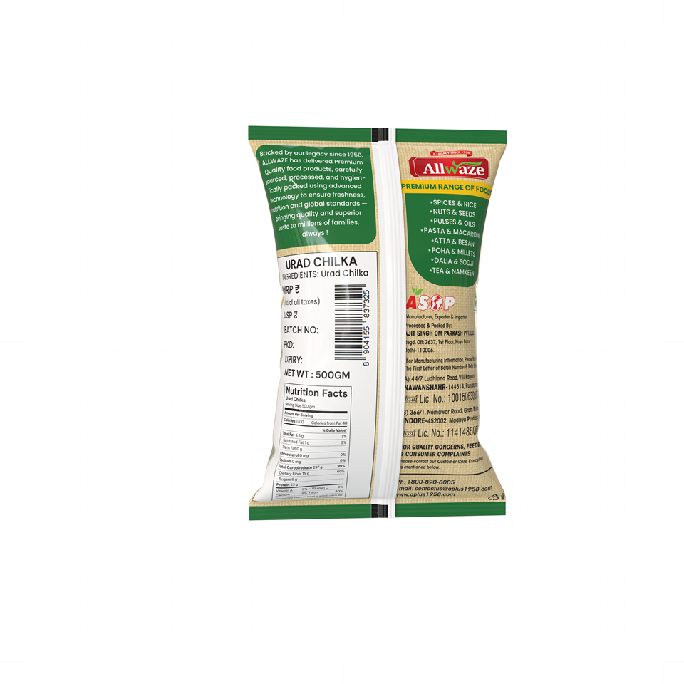 Urad Chilka (Split Black Gram with Skin) is a nutritious and protein-rich lentil known for its distinctive earthy flavor and creamy texture. With the skin intact, it offers a perfect balance of taste and nutrition, making it a popular choice for traditional Indian dishes like dal makhani, panchratna dal, and khichdi.